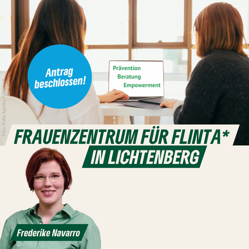 Das Bezirksamt wird ersucht, in Lichtenberg ein Frauenzentrum mit dem Schwerpunkt der Prävention und Beratung hinsichtlich der Gewalt gegen Frauen, Lesben, sowie Inter-, Nicht-binäre, Trans-, und Agender Personen und häuslicher Gewalt einzurichten. Insbesondere die Punkte der geeigneten Standorte, Finanzierungsmöglichkeiten auf der Bezirks-, Landes-, Bundes- und EU-Ebene und über Stiftungen sowie geeignete Träger sind hier zu klären.