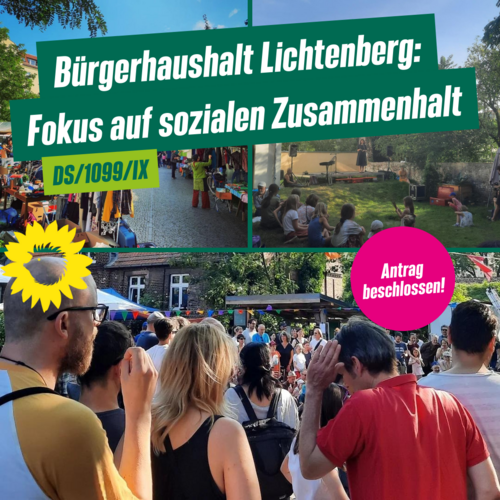 Das Bezirksamt wird ersucht, gemäß der Rahmenkonzeption zum Bürgerhaushalt Lichtenberg für das Jahr 2025 das Schwerpunktthema „Solidarisches Miteinander und sozialer Zusammenhalt“ zu setzen und damit das Themenspektrum der eingereichten Vorschläge wieder zu erweitern.